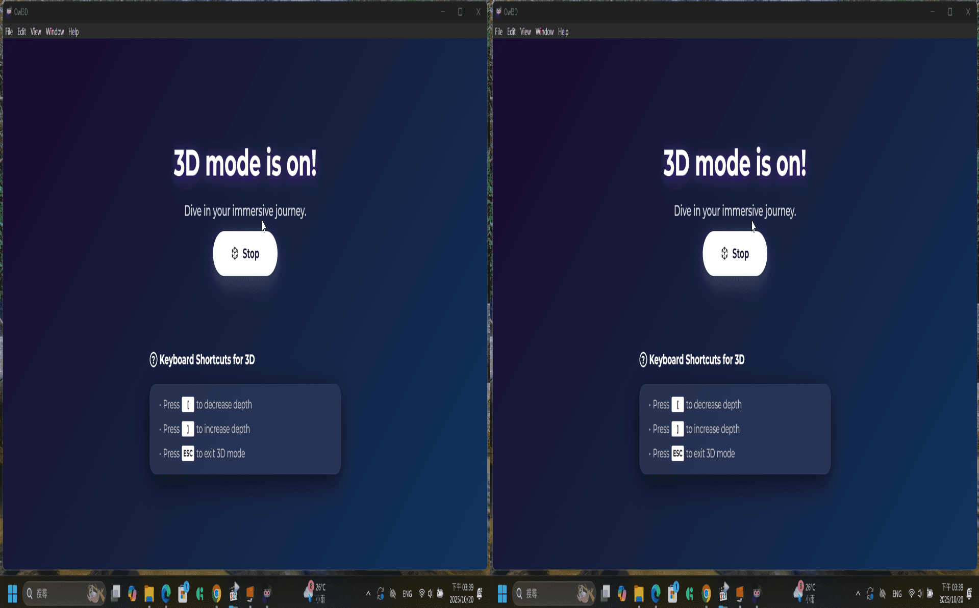 Once you enable SBS mode, the two split images will correctly merge into one, and you will immediately see a clear, immersive stereoscopic 3D image. Your 3D creative journey begins now!