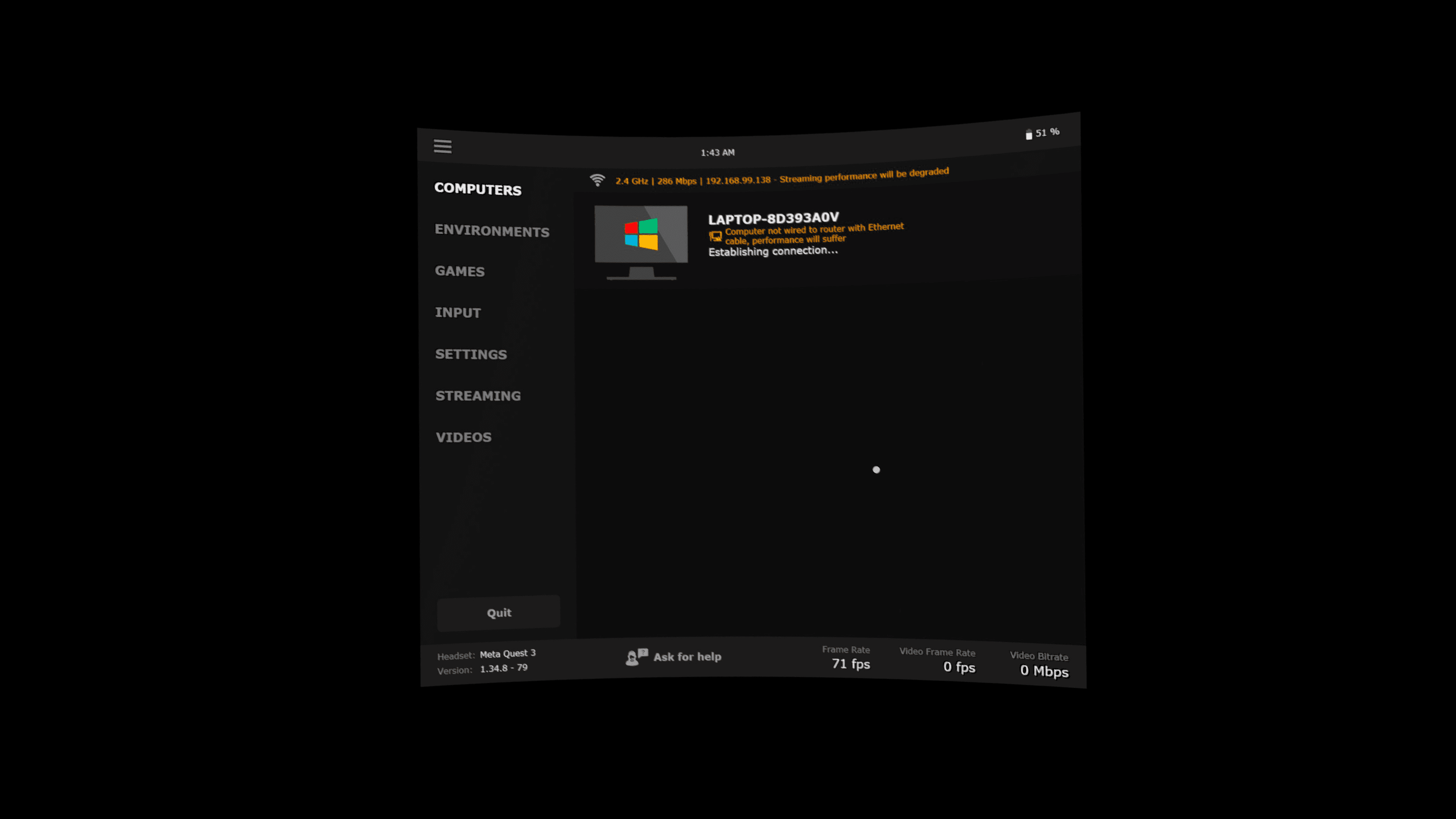 Auto-Connecting to your PC: Your desktop will automatically stream to your VR headset when ready.