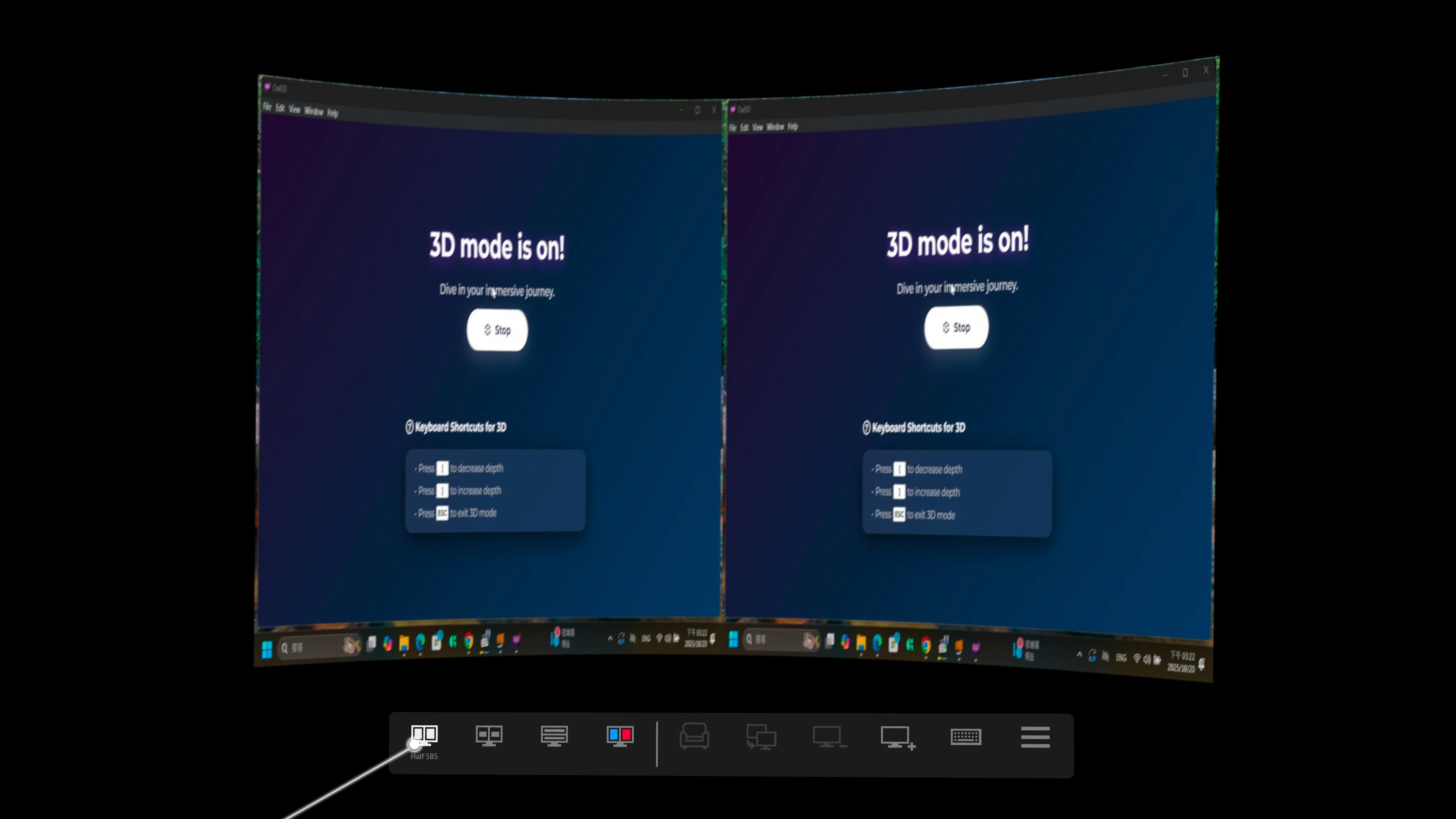 Once Owl3D Screen starts, you will notice your PC screen inside VR splits into two side-by-side images. This will look distorted or doubled. This is normal!