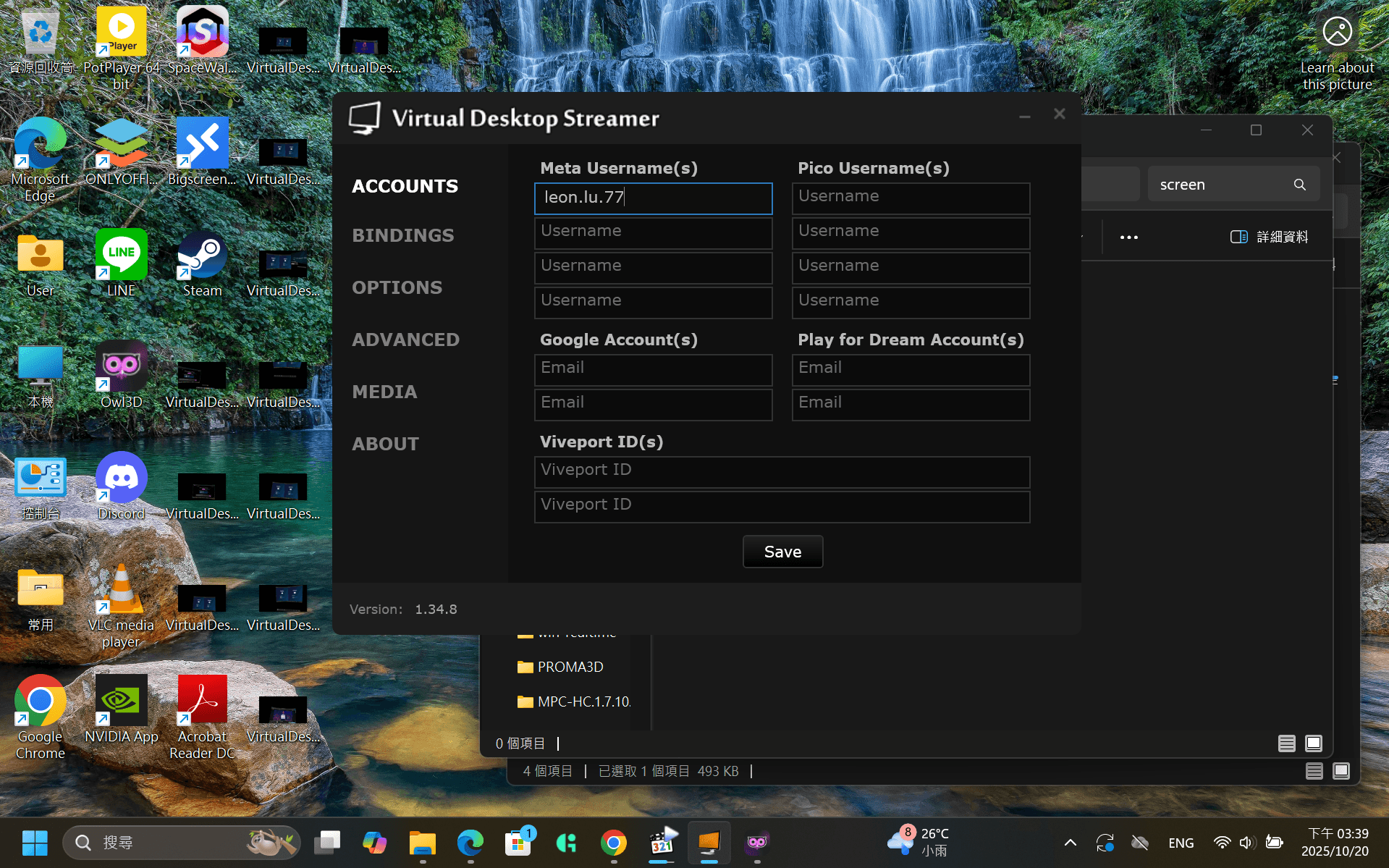 Set Your Name: Launch the Virtual Desktop app. In the "Accounts" tab, enter your exact VR platform username (e.g., your Meta/Oculus username).