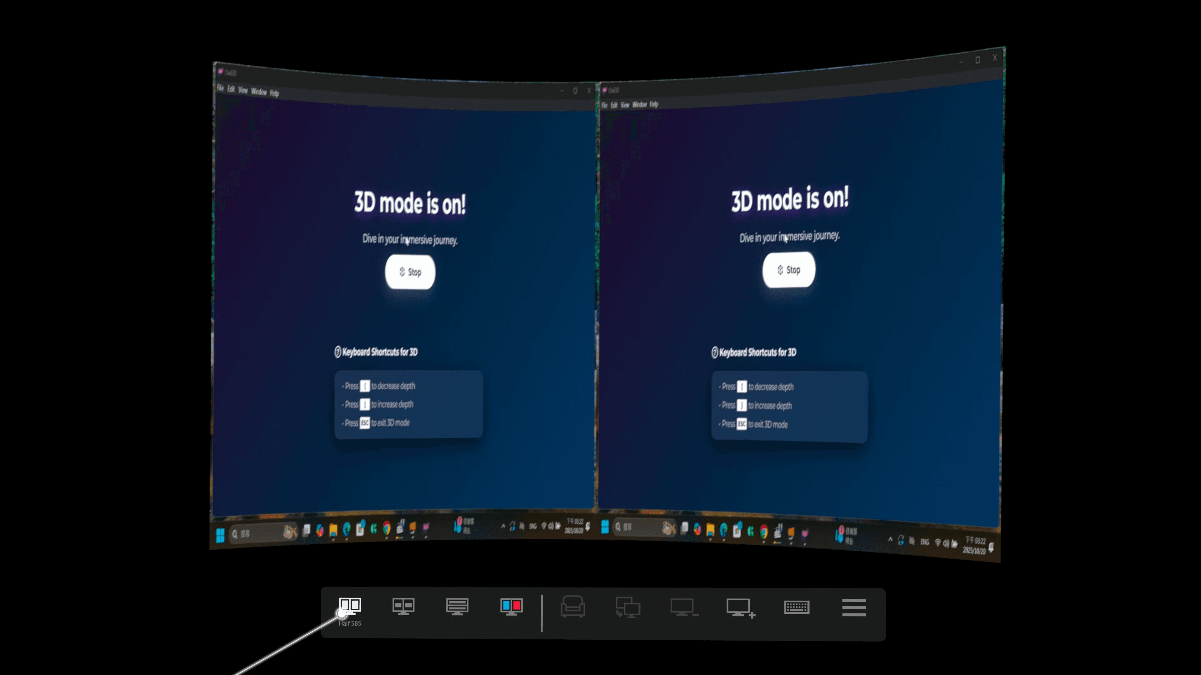 Once Owl3D Screen starts, you will notice your PC screen inside VR splits into two side-by-side images. This will look distorted or doubled. This is normal!