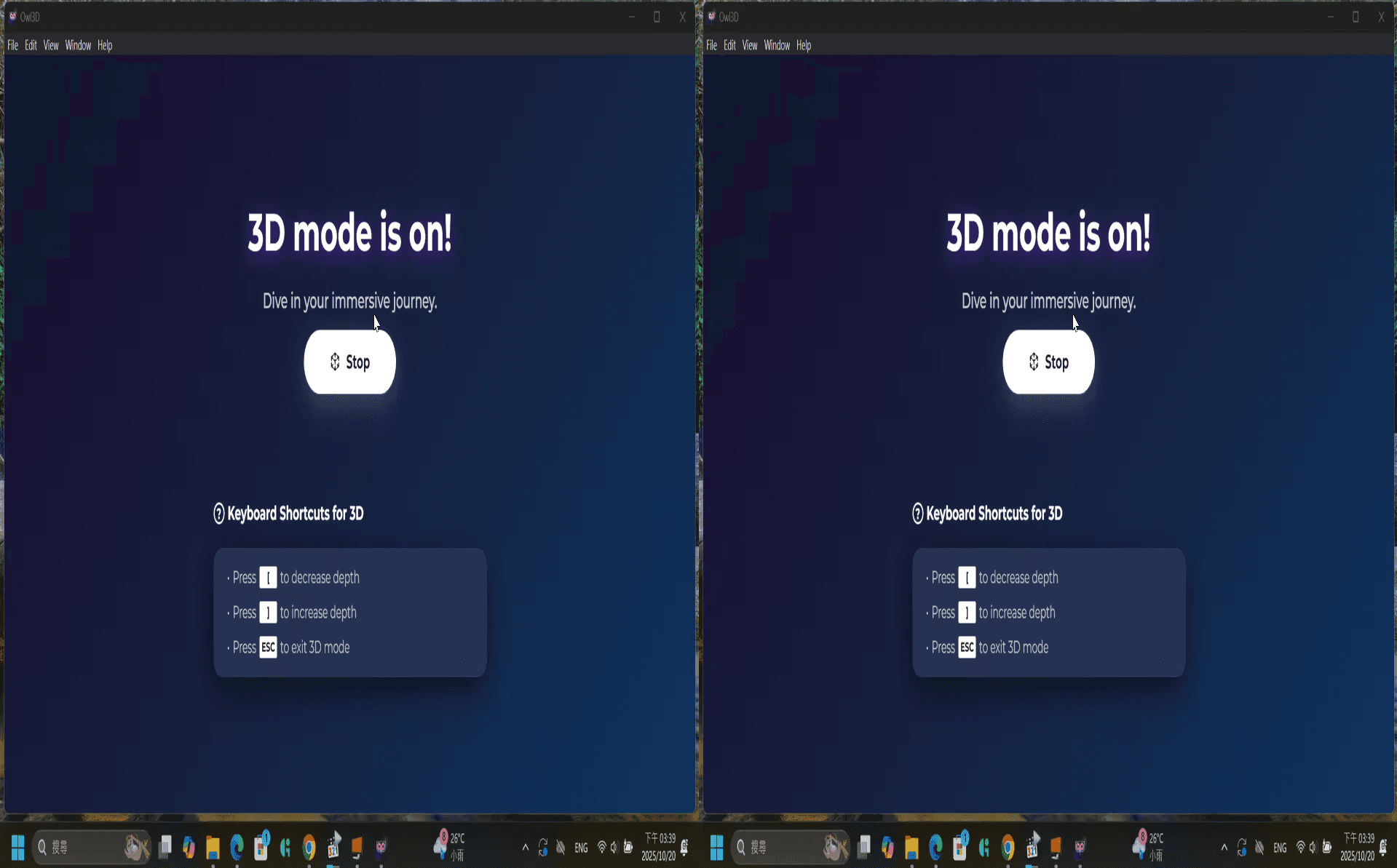 Once you enable SBS mode, the two split images will correctly merge into one, and you will immediately see a clear, immersive stereoscopic 3D image. Your 3D creative journey begins now!