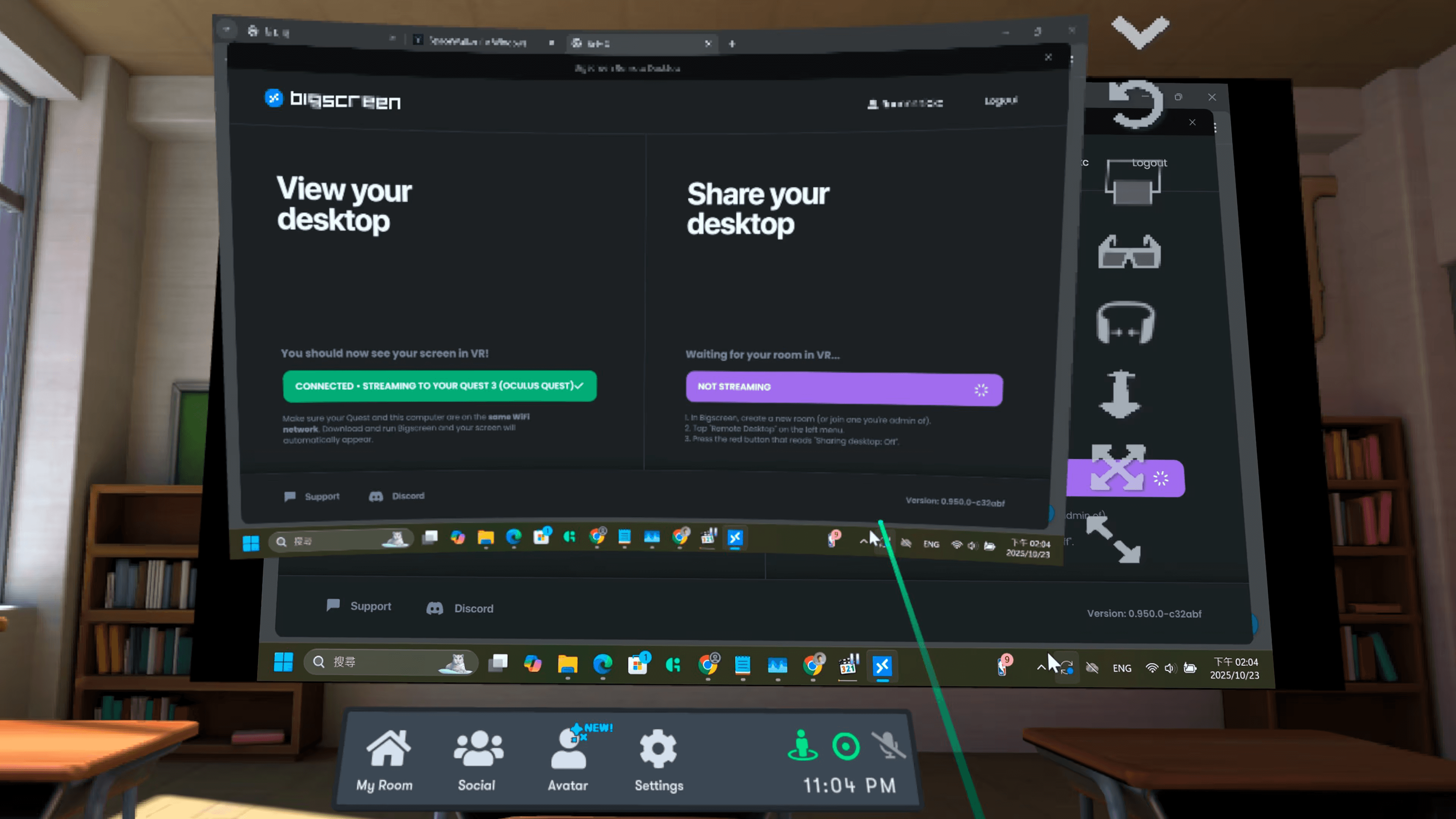 Connection Successful: Your PC desktop will now appear on the virtual screen in Bigscreen.